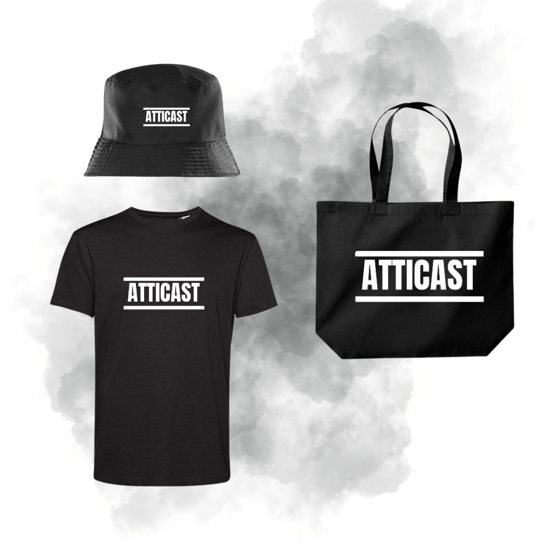 Rep the name in bold style with the ATTICAST T-Shirt. Made from soft, breathable cotton, this classic black tee features the iconic ATTICAST logo in crisp white, framed by clean horizontal lines for a sharp, modern look. Whether you’re at a gig, on the streets, or lounging at home, this shirt delivers comfort and attitude in equal measure.