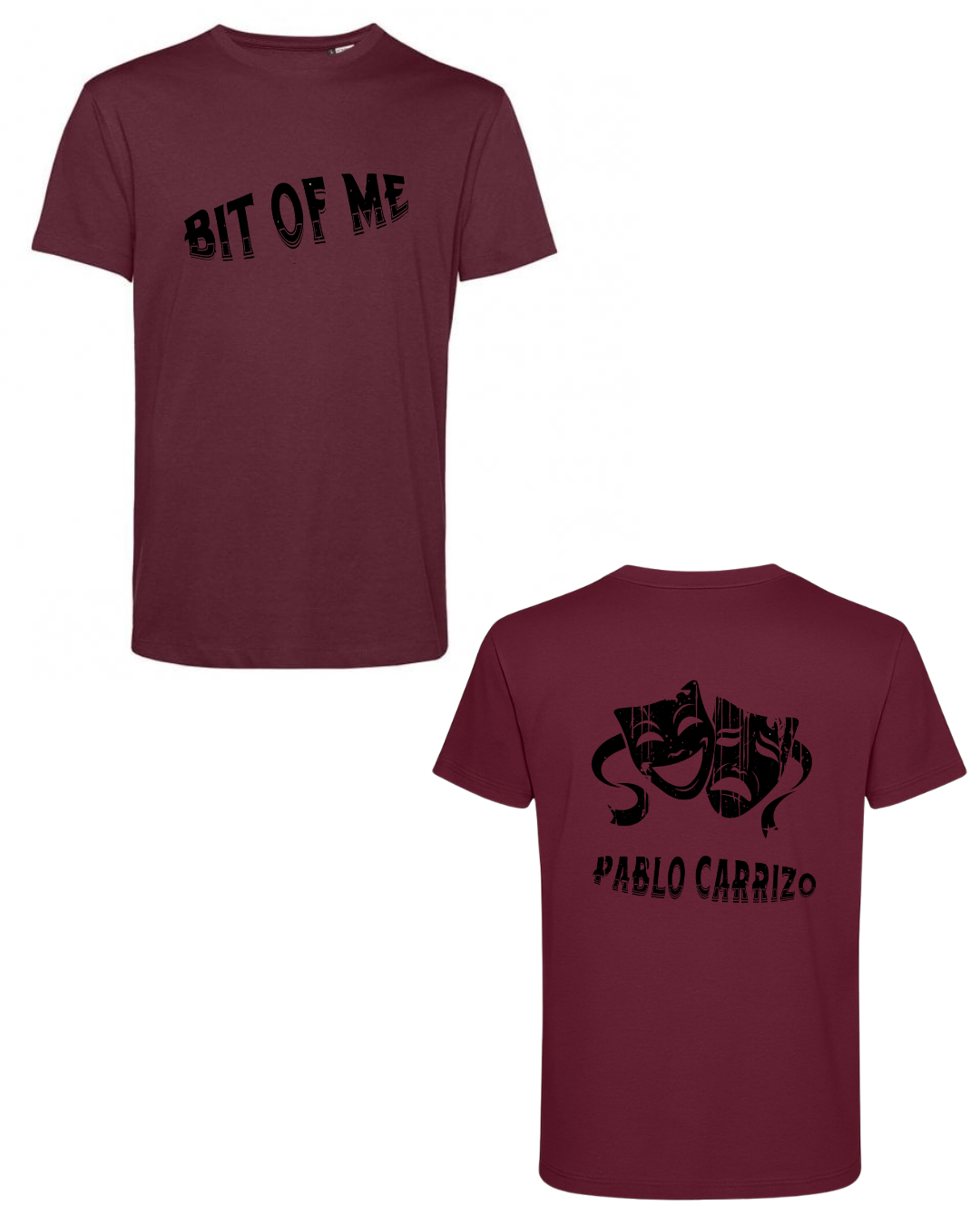 Take a Bit of Me wherever you go with this exclusive Pablo Carrizo merch tee. Available in Burgundy or Charcoal Grey, each shirt features bold distressed artwork on the front and the iconic theatre mask design with Pablo’s name on the back. A perfect blend of style and meaning for fans who want to wear their connection with the music.