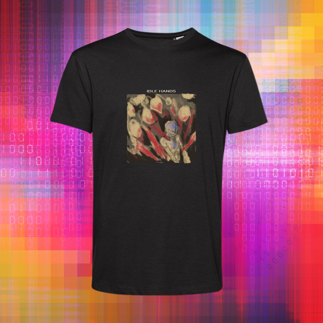 Dark, bold, and built to make a statement — the Idle Hands Black Art Print Tee captures the raw intensity of the band’s sound. Featuring a striking graphic on a deep black backdrop, this shirt channels the mood of dim-lit venues and late-night lyrics.