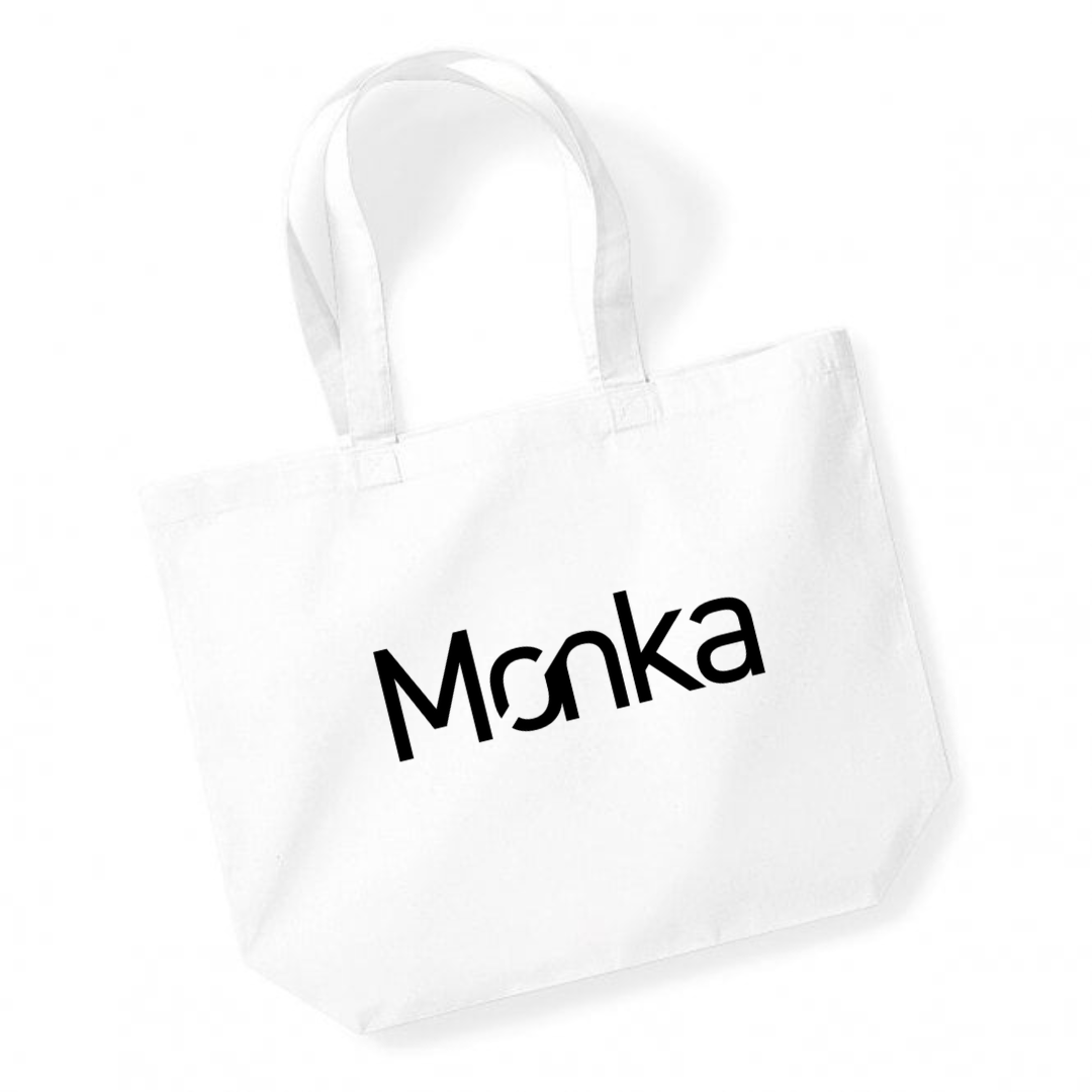 This heavyweight white tote bag features the bold Monka logo printed at an angle — a fresh twist on a classic look, just like Monka’s genre-blending sets. Built for daily missions, last-minute gigs, or those spontaneous moments where Monika takes the lead.
