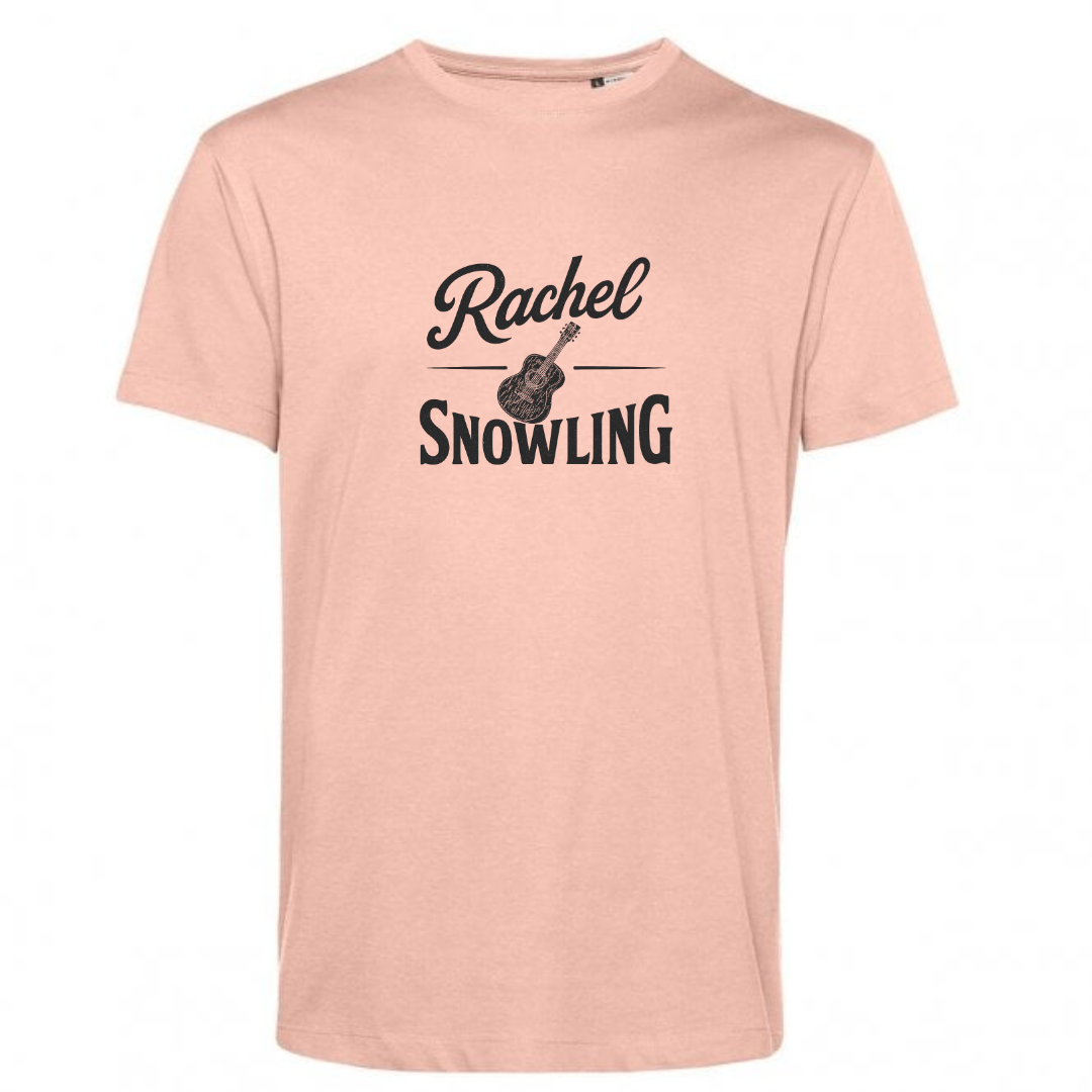 Step into the sound of Rachel Snowling with this official logo tee — featuring her name in bold, vintage lettering wrapped around a beautifully illustrated acoustic guitar.