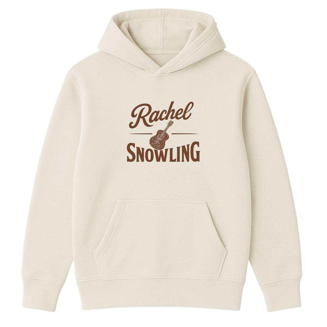 Wrap yourself in the heart and soul of Rachel Snowling’s music with this official logo hoodie. Featuring her name and signature guitar graphic in a warm rustic print, it’s the perfect piece for fans who feel every lyric and love a laid-back, country vibe.